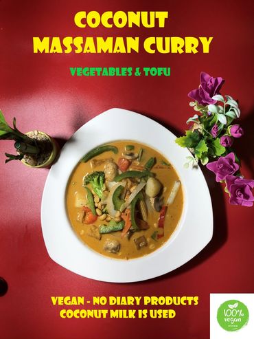 Under "Allergies?" Option ; Choose VEGAN. We will avoid Fish Sauce, Eggs, Diary Products. All Thai Curries are use "Coconut Milk". Also Choose "Vegetarian + Tofu" under Protein Choice